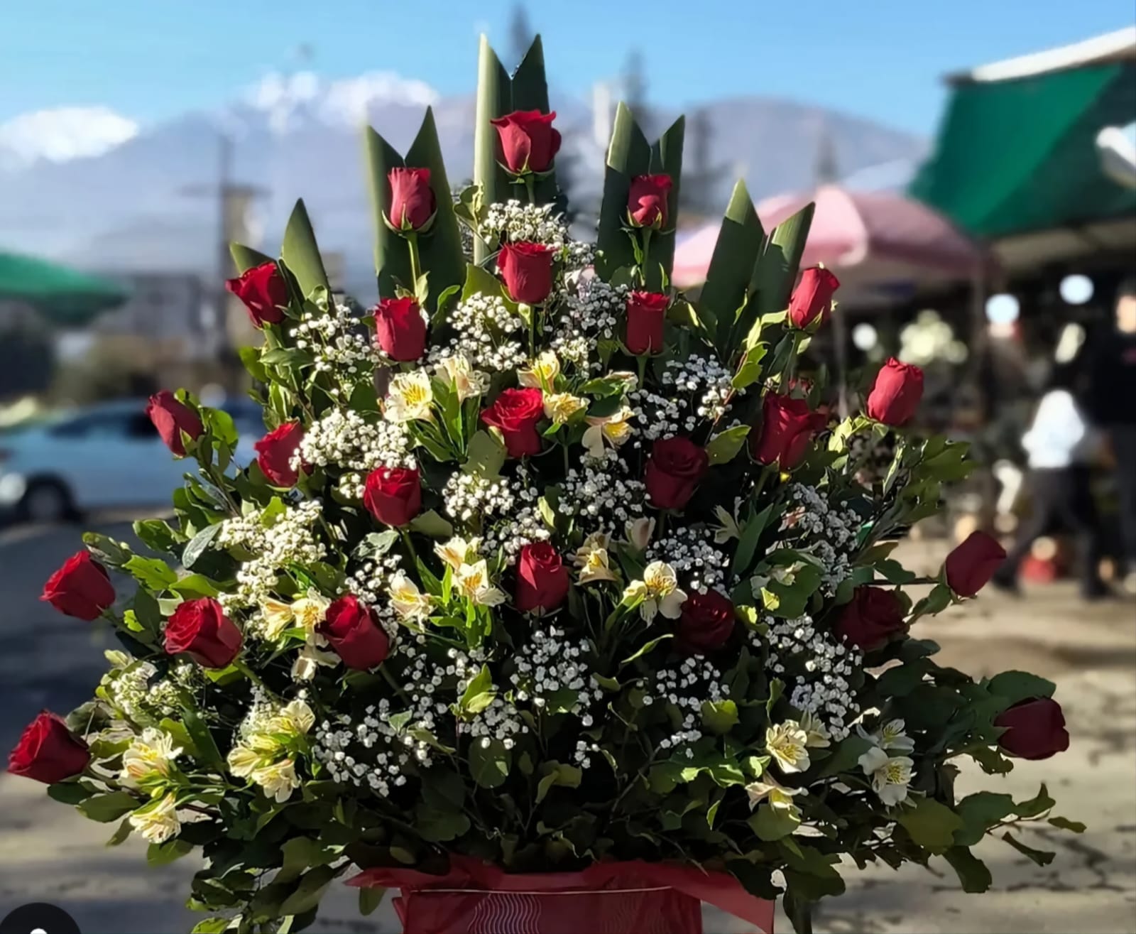 Arreglo XL en base de madera incluye rosas astromelias e ilusiones