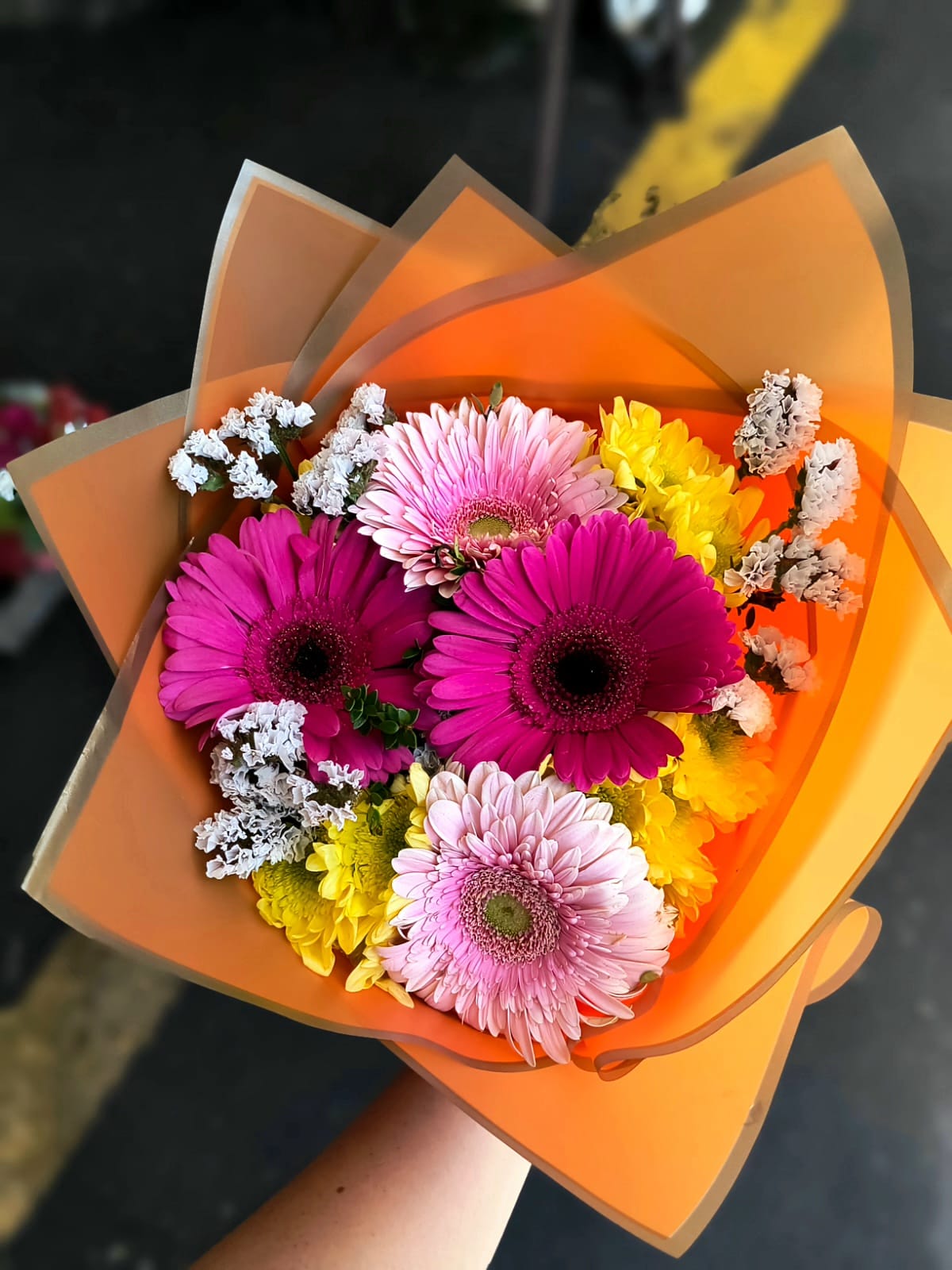 • ¡Oferta! Ramo personalizado incluye 3 flores principales más flores de estación y chocolate ferrero de 8 unidades