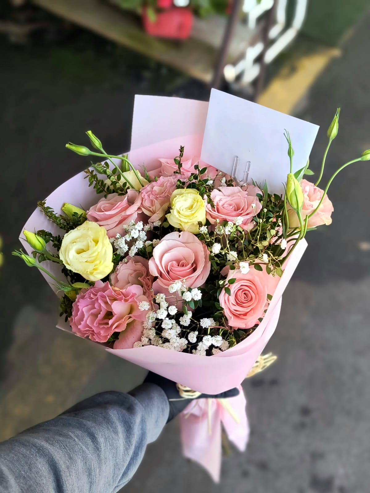 ramo rosado mix de flores rosas y lisianthus