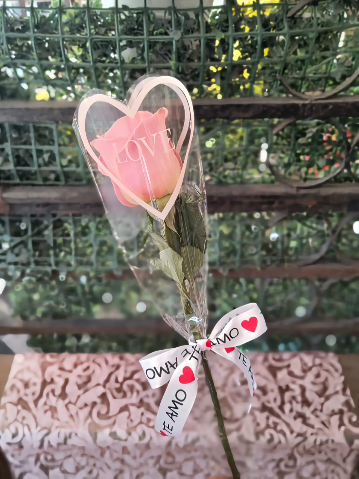 Rosa ecuatoriana envuelta en delicado papel en forma de corazón